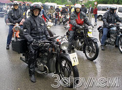 Поливает знатноѕ Но дождик мешает, похоже, только мне одному: ни зрители, ни главные участники события - обладатели ретромотоциклов не обращают на мокрынь-непогоду ни малейшего внимания. Аксель Фей, своим ходом приехавший на Zundарр К800 1938 года из Германии, спокойно осматривается из-за стекол очков. Ян Красноперов (Латвия), самый юный участник слета, за два часа до прибытия сдавший экзамен на мотоциклетные права, выслушивает наставления папы Андрея. Организатор и вдохновитель четвертого мотоциклетного ралли "Kurzemes Rinkis" (в переводе с латышского - "Курляндское кольцо") Юрис Рамба успевает и руководить процессом, и общаться с участниками, и что-то жевать на ходу...