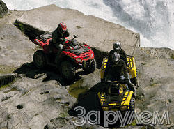 Инженеры американской компании Arctic Cat сделали свой выбор схемы двигателя совершенно осознанно: когда корпорация целиком зависела от поставок моторов "со стороны", то в дело шли и 1-цилиндровые Suzuki, и 2-цилиндровые Kawasaki. Но когда фирма решила строить собственный завод по производству двигателей, выбор пал на 1-цилиндровые. Таким силовым агрегатом оснащен и Arctic Cat 650H1 4x4 SE (405 000 руб.)*, полноприводный спортивно-утилитарный мотовездеход с независимой подвеской всех колес. Лишь чуть дешевле модель 650V2 4x4 (400 000 руб.) с такой же практически ходовой частью, но 2-цилиндровым двигателем Kawasaki. В сезоне 2007 года на рынок выходит модель 700 4x4 EFI SE (395 000 руб.) с новым 1-цилиндровым двигателем собственного производства, оснащенным не карбюратором, как 650Н1, а впрыском топлива. Мотовездеходы канадской компании Bombardier Recreanational Product (BRP) с этого года несут марку Can-Am. Всего год назад отделение концерна - австрийская фирма Rotax - начало производство 2-цилиндрового V-образного 800-кубового двигателя. Этот самый мощный силовой агрегат для ATV (62 л.с.) оснащен 4-клапанными головками цилиндров, впрыском топлива. Он установлен в шасси спортивно-утилитарного мотовездехода Outlander 800 (400 000 руб.): независимая подвеска всех колес, размещенные у дифференциалов дисковые тормоза, рама системы SST, защищающая все агрегаты от ударов снизу. Модификация Outlander XT800 (430 000 руб.) дополнительно оснащена лебедкой, шинами с увеличенными грунтозацепами, защитой для рук на руле и бамперами спереди и сзади. Машина выпускается и в двухместной версии Outlander Max 800 (430 000 руб. за базовый вариант и 460 000 руб. за исполнение ХТ).