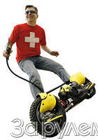 Двигатель - от газонокосилки, он 2-тактный, рабочий объем варьируется от 43 до 49 смз. Мощности немногим больше 2 л.с. достаточно для разгона человека весом 80-90 кг (при том, что сама "доска" весит 22 кг) до скорости 30-35 км/ч. Запаса бензина - один литр - хватит на 40 км пути. Если, конечно, вы не устанете раньше - все-таки ехать приходится стоя, при этом ноги амортизируют подскоки-провалы, вызванные неровностями трассы. Именно трассы, ведь декларируется, что Wheelman прекрасно едет и вне дороги (для этого шины достаточно "внушительны" - 2,50-10). На рекламных видеороликах отчаянные австралийские хлопчики и дивчины носятся по пампасам.