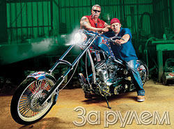 Черные джипы с тонированными стеклами вкатили во двор Orange County Choppers. Небольшой торговый зал. Но его содержимого достаточно, чтобы вызвать спазмы в мошонке и захлебнуться слюной. Мама, роди меня обратно! Такой красоты я еще не видывал! Классические линии кастомов в чисто американском стиле и обилие хрома возбудят любого хромосексуала!.. Но насладиться не дали - начиналась пресс-конференция с самим "супербизоном", Тотулом-старшим и его сыновьями.