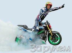 Отжигать на ходу проще, если прежде заставите заднее колесо буксовать на месте. В положении "отжиг на месте" нужно немного ослабить передний тормоз, и мотоцикл начнет двигаться вперед. Важно не переборщить с отпусканием тормоза и позволить мотоциклу двигаться не быстрее скорости пешехода. В этом темпе не лишне "побродить" с отжигающим мотоциклом - только тогда и почувствуете, как он управляется, как реагирует на изменение оборотов и наклон. Общее правило: на больших оборотах мотоцикл ответит на действия пилота нервно, на меньших - спокойнее. Опять же, не переборщите со снижением оборотов - иначе заднее колесо может "схватить" асфальт, а переднее (оно у нас почти заблокировано) уйдет в сторону. Короче, последствия могут быть плачевными. И не забывайте держать пальцы на рычаге сцепления - это ваша палочка-выручалочка.