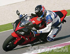 Достигнув отметки максимального крутящего момента на 9000, вы не почувствуете взрыва мощности - скорее легкий всплеск. И пошел ускоряться!.. На выходе из одного из многочисленных поворотов трассы, который нужно проходить на второй или максимум третьей передаче, переднее колесо потянулось вверх в ленивом "вилли". Класс! Кривая крутящего момента, по стандартам ультраспортбайка, практически горизонтальная - такая должна быть у "твина", но не у "четверки", а тут - получите удовольствие! Благодаря правильному подбору передаточных чисел, переключившись "вверх", когда стрелка тахометра приблизилась к отметке 11 500 об/мин, снова оказываешься в "сладком" диапазоне между 9000 и 12 000 - здесь двигатель выдает самую "толстую" мощность (на низших передачах даже не успеваешь "попасть" в "красную зону"). Когда на длинной прямой трека раскручиваешь мотор выше пиковых 11 250 об/мин, мощность не падает. И тут же сообразишь: на коротких прямых участках можно двигаться на пониженной передаче - чтобы лишний раз не переключаться... Ай да движок!