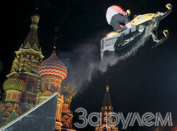 Десять лучших спортсменов из США, Канады и Швеции приехали в Москву для участия в соревнованиях "Революция на машинах". Самому юному, канадцу Ли Стюарту, всего 17 лет, "старому", американцу Крису Бурандту - 26. К их великому разочарованию, в столице не выпал снег (медведей на улицах тоже не встретили). Но "соревнования пройдут в любую погоду": нет снега - возьмем опилки! Ими засыпали посадочные горки (высотой 4,4 метра), а также брусчатку вокруг. Для разгона - трамплины высотой 2,4 метра с искусственным покрытием, обеспечивающим необходимое скольжение. Последовательно расположенные трамплины и горки отдалены друг от друга на 20 и 25 м.