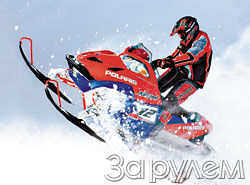 POLARIS Fusion 900Снегоход, конечно, не лодка, но этот, судя по названию, может и поплыть, и полететь. И что только не таится за многообещающим словом "fusion"! Воображение, во всяком случае, рисует живописные картины. Не вдаваясь в тонкости перевода, просто суммируем все, что может входить в это понятие относительно всего лишь снегохода. Равносильный баланс управляемости и устойчивости, мощности и проходимости, комфорта и безопасности уже вполне оправдывает столь громкое название. Новый, юбилейный, Fusion 900, как и большинство последних моделей снегоходов Polaris, получил полный комплект похвальных дополнительных возможностей. Чтобы не быть голословными, пройдемся по порядку по всем заявленным пунктам.