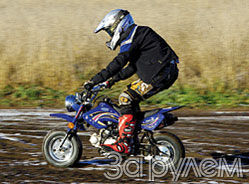 Ба, старый знакомый! Или?.. Вот в чем дело: Fargo, по сути, - родич уже протестированного Defiant DT 50-1M Monkey (см. предыдущий номер "Мото"), только этот - с внедорожным уклоном. "Нормальный" (не складной, как у Monkey) руль, бак и обвесы, как у кроссача, нет заднего фонаря, поворотников и зеркал, зубастые подножки и лапка ножного тормоза. С дорожной "обезьянкой" нашего испытуемого роднит вид фары, спидометр и контрольные лампы, электростартер и звуковой сигнал. Ого, на рулевой колонке замок - роскошь для кросс-байка! Здесь "повторены" и пузатые 8-дюймовые шины, они придают "дефиантовским" мини-байкам озорной вид: так и зовут съехать куда-нибудь с дороги и показать, на что эта техника способна!