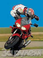 Но вернемся к нашим "тетям" и мотоциклам. Если вы, как и подобает, после прохождения апекса начали "открываться", но сделали это слишком резко, то заднее колесо срывается в занос. Но тогда оно теряет лишь часть сцепления с дорогой. Самое сложное в подобной ситуации - не перебороть мотоцикл и силы инерции и трения, а совладать с собою, чтобы не "закрыть" газ резко (я же как раз "закрыл", и именно резко). Газ следует либо "прикрывать" очень плавно (и именно "прикрывать", а не хлопать дросселями об упор холостого хода), либо держать ровным. Как? Расслабьте руки - и мотоцикл, еще пару раз вильнув задом, сам вернется в стабильное положение. Повторю: на треке у меня подобное случалось часто, но я не падал. Слайдеры на комбезе не для того, чтобы нарушать их девственность напильником, а потом похваляться в тусовке "эх я какой крутой" - они как раз для того и существуют, чтобы в случае заноса заднего колеса была возможность немного оттолкнуться от асфальта - тем самым вы вымолите у фортуны шанс на спасение вас обоих, мотоцикла и себя.