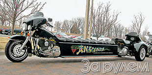 Создатели трайков не заморачиваются соблюдением разумных габаритов. Не в том смысле, что кушают как не в себя (хотя и такие не редкость), а в том, что меньше всего задумываются о таких несущественных характеристиках своих аппаратов, как длина или радиус разворота. Встречаются и конструкции с количеством посадочных мест, превышающим классические 2-3. Например, американская компания Ecstasy Cycles предлагает свой трактороподобный Renegade и в пятиместной версии. А австралийская Limo Trikes, соответствуя своему названию, пришпандоривает к мотоциклетному передку натуральный кусок лимузина. В указанных примерах сиденья расположены по-автомобильному - в два ряда. Перед нами же случай иной.