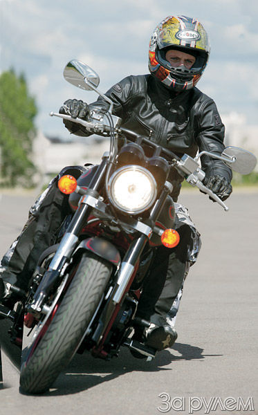 Превосходно жесткая ходовая часть, даже при меланхоличном двигателе, провоцирует на «подвиги» в транспортном потоке. Низкий центр тяжести, прямая, почти классическая посадка пилота и незначительный рейк вилки-«перевертыша» позволяют совершать по-спортбайковски выверенные маневры. В пробках значительная масса Mean Streak (без малого 300 кг) не «грузит». Единственный ограничитель маневренности мотоцикла – относительно небольшой угол поворота переднего колеса. Но, как ни странно, он почти не увеличивает радиус разворота, не мешает маневрировать в ограниченном пространстве.