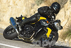 B техническом отношении новичок практически повторяет спортбайк BMW K1200S (cm. "Мото", № 8-2004): тот же расположенный поперек машины 4-цилиндровый двигатель, наклоненный вперед на 55 градусов, рама - из алюминиевого сплава, передняя подвеска - на продольных рычагах Duolever. Отличия мизерны: вследствие измененной системы впуска с боковым "шноркелем" чуть-чуть упала мощность на "верхах" (со 167 до 163 л.с.) да передаточное число главной передачи увеличено с 2,82 до 2,91 - все равно нейкеду за капотированным спортбайком не угнаться. Зато будет "рвать" с места - мало не покажется! Конструкторы немного поиграли с геометрией байка: чуть подняв переднюю часть, они уменьшили наклон рулевой колонки (на 0,4 градуса) и вылет (на 11 мм). В выигрыше - управляемость, особенно на малых скоростях.