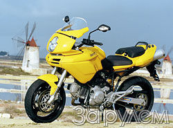 Снизить стоимость аппарата помогло то, что на приборной панели нет мультифункционального дисплея, как на "старших" моделях. Подвеска "очень базовая", с нерегулируемым 43-мм "перевертышем" Marzocchi и задним амортизатором Sachs, который регулируется на преднатяг пружины и "отбой". Рама - "фамильная" "птичья клетка", но вместо одностороннего алюминиевого маятника на этом байке установлен двухсторонний стальной.