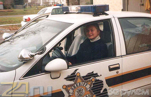 По счастью, у меня с собой оказалась моделька "Волги", прихваченная на всякий случай в качестве сувенира. Имея на руках такой "раритет" я быстро завоевала симпатию Джорджа, а его восторг от "настоящей русской машинки" вылился в разрешение примерить форму шерифа и... покататься на служебном автомобиле главы местной полиции. Поводить красивое авто с мигалкой на крыше мне сначала позволили только по тюремному двору. Я аккуратно вырулила из гаража, проехала круг почета и припарковалась рядом с нашим фотографом, который сделал историческое фото меня и "шерифской" машины. Сам Джордж в это время следил за моими действиями с плохо скрываемым напряжением, но, видимо, под конец успокоился и даже предложил сопроводить наш автобус до следующего места экскурсии, доверив мне руль уже знакомого авто.
