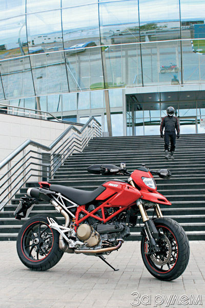 Несколько часов езды по городу я проводил в режиме экзамена различных узлов и систем: нагружал как надо! Hypermotard сдал его на «отлично». Мотор не упрекну в слабосилии, его весьма гуманные настройки позволяют менять стиль езды, манеру и режимы движения в зависимости от настроения: хочешь – «зажигай», не хочешь – «пеллагрируй». Тормоза от «свежего» 1098-го в сочетании с резиной Diablo Corsa (для этого мотоцикла она хороша до нескромного!) поразили тем, что выдавали до тончайших нюансов импульсы обратной связи и, без преувеличения, работали фантастически эффективно. Про подвески Ohlins говорить вообще ничего не хочу: если в них сию минуту что-то не устраивает, диапазон регулировок очень широк – пользуйся.