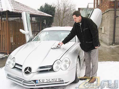 И вот Роберт вместе с Мацеком взялись колдовать над старым " Mercedes CLS/"> Mercedes CLS/">Mercedes CLSnbsp;м". Сняли с кузова все оперение, срезали крышу, приварили дуги, а сверху поставили новые панели - из жести, алюминия и стеклопластика. Все эти детали только максимально приближены к "оригиналу", так как панове работали глядя на картинки SLR в журналах. Зато ежедневно два года подряд. Правда, для полной реализации проекта все-таки пришлось прибрести серебристого красавца... в виде маленькой масштабной модели. Поэтому если какой педант при внимательном изучении и заметит небольшие отличия от настоящего Vision, может подивиться такому поразительному способу копирования...