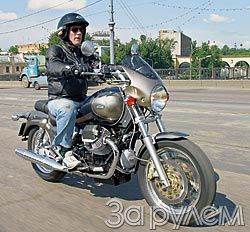 Без труда узнал хорошо знакомый звук V-образного двухцилиндрового мотора-работяги, его "регистр" соответствует объему 1064 смз. Но на этот раз он в стальной дуплексной раме California Titanium - еще одного классического "дорожника" Guzzi.