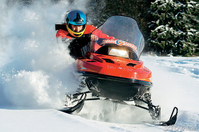 Из любопытства поднял капот (кстати, изнутри покрытый толстым слоем шумоизоляционного материала), под ним – с виду совершенно новый мотор с четкими гранями «жидкостных» головок цилиндров. Такая система охлаждения – долгожданная для пользователя «фишка». Она уже несколько лет как апробирована на спортивных машинах, но никак не доходила до серии. О долгих мытарствах конструкции свидетельствуют отлитые на головках цилиндров надписи с прежним названием предприятия – «Рыбинские моторы». Хочется верить, раз новшество вводилось не впопыхах, его не будут сопровождать «детские болезни». Хотя под рубашкой охлаждения та же двухцилиндровая «пятисотка», знакомая по прежним моделям, новый мотор работает тише. Жидкостное охлаждение «наворочено» не ради «голого» новаторства или чтобы «снять» побольше денег с потребителей – оно более эффективно отводит тепло, что позволило поднять мощность двигателя до 60 л.с. А это уже как у «серьезных» рабочих снегоциклов ведущих мировых производителей.