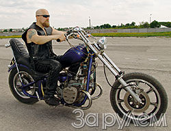 При доработке коробки и главной передачи сосредоточился на борьбе с утечками масла. Врезал штуцеры в картеры КП и главной передачи и соединил их шлангами с воздушным фильтром. Разрежение из него теперь передается в эти узлы. И течи прекратились! Заднее колесо самопала крепится к раме жестко. Решение, конечно, спорное, но Александра это не смущает. Отсутствие задней подвески с лихвой компенсирует шикарное и в меру мягкое сиденье. Работы с ним было много, но результат окупил все. Зато передняя подвеска, изготовленная на основе "ижевской" лицензионной вилки, выше всех похвал. Но не обошлось без доработок. Прежде всего увеличил угол наклона рулевой колонки. Затем удлинил перья вставками, а траверсы сделал из отлитых из стали деталей К-750 первых образцов. Рассверлил в них отверстия до 38 мм под "ижевские" трубы и отникелировал.
