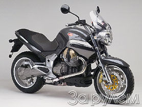 Сразу подчеркну разницу между новой Breva и ее дебютировавшей годом ранее 750-кубовой "сестрой". "Малышка" представляла собой чуть усовершенствованный круизер Nevada 750. Нынешняя "большая" Breva - совсем другая. Лишь двигатель - 1100-кубовая V-образная "двойка" - перекочевал с больших Moto Guzzi, да и то с немалыми изменениями. Конструктивно он схож не с моторами, используемыми на круизерах (что естественно было бы ожидать - ведь неоклассик), а похож на силовой агрегат спортивной серии. Хотя и перенастроен - для лучшей гибкости работы: его мощность - 84 л. с. при 7800 об/мин. Сравните: у "спортов" 91 л. с. при 8200 об/мин. Важное новшество - две свечи зажигания на цилиндр, в этом инженеры компании последовали за другими производителями "больших Twin'ов" - BMW и Ducati. Выпускная система из нержавеющей стали оборудована трехкомпонентным каталитическим нейтрализатором, так что "большая" Breva уже сейчас отвечает требованиям норм Евро III, хотя в отношении мотоциклов они вступят в силу лишь через несколько лет.