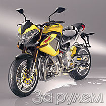 Впрочем, создатели то ли байка, то ли байки про сие имя всячески подчеркивают: тринитротолуол - это вам не нитроглицерин. Мощь большая, но спокойная, без детонатора не взорвать. Благо, что в основе новинки - первоклассный спортбайк Benelli Tornado. Правда, его превращение в стритфайтер не свелось лишь к снятию "лишнего" пластика. Мотор начисто излечили от "истеричности": другая форма камеры сгорания, измененный профиль кулачков распредвала, плюс увеличенный с 49,2 до 62 мм ход поршня. В итоге рабочий объем возрос с 898 до 1131 смз. Мощность осталась практически прежней - 135 л. с., но соответствующие ей обороты "упали" с 11500 до 9250 об/мин. Еще более волшебное преображение произошло с характеристикой крутящего момента: вместо 96 Нм при 8500 об/мин - 118 Нм при 6250 об/мин. "Растягивают" кривую момента два электронных клапана во впускном и выпускном трактах. Ведь "правильная" работа стритфайтера - не спидометры "класть", а "рвать" соперников в светофорных гонках. С этой же целью увеличены передаточные отношения двух первых передач.