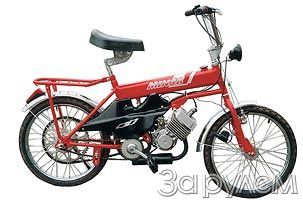Слушаю эту историю вполуха - мне "до фонаря", с чего скопировали движок. Вопрос - каков он здесь и сейчас. Знаете ли вы, что важнее всего в тесте? Запустить мотор! С ММВЗ-1.102 (имя "Кроха-2" руководством отвергнуто, а другого не дадено) не все так просто: сначала нужно разогнаться, крутя педали. Вращение педалей передается цепью на заднее колесо и одновременно цепной передачей через моноблок "звездочка-шкив" и клиноременную передачу - на автоматическую центробежную муфту. При достижении скорости 8-15 км/ч центробежная муфта срабатывает и во вращение придет коленчатый вал. После запуска двигателя и повышения его оборотов при открытии газа сработает центробежное сцепление, и крутящий момент пойдет на заднее колесо. С этого момента вращать педали больше не требуется. Во всяком случае, так - по инструкции.