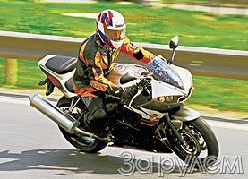 За счет того, что байк стройный в "талии", высота по седлу не кажется чрезмерной, хотя и не так уж мала - 820 мм. Любой с ростом до 180 см найдет ее удобной, насколько это возможно для гоночного мотоцикла таких размеров. При расслабленной посадке нагрузка на запястья рук и предплечья водителя не изматывает. Воздушный поток огибает острый лобовой обтекатель. Красоту его формируют не только общий дизайн, но и функциональные детали - интегрированная в него новая по конструкции головная оптика и система инерционного наддува.