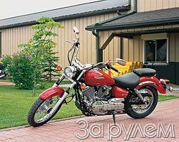 Прошло семь лет, и дебютировала модель XV250 Virago. В отличие от остальных, носящих то же имя, в ней применена иная рама - дуплексная стальная вместо хребтовой, а привод на заднее колесо осуществляется цепью. Эту легкую, недорогую модель с проверенной временем исключительно простой и надежной конструкцией и следует считать "прародителем" современной Yamaha XVS250 Drag Star - вот она-то, в исполнении 2003 года, и поет мне песни, пока жду прогрева движка.