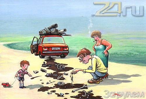 Итак, снимаю с расширительного бачка тонкий возвратный шланг от радиатора и глушу его, вставляя длинную, чуть коническую обычную художественную кисточку. На штуцер бачка надеваю переходник, изготовленный из 10 сантиметров бензошланга, старого колесного вентиля и хомутика Norma. Обычным ножным насосом создаю давление в системе охлаждения около 0,5 атм. Через несколько минут во все щели польется в три ручья. Важно не забыть осмотреть бачки радиатора и радиатор печки. Этим способом нельзя обнаружить лишь течь через прокладку головки блока, а также через прокладку впускного коллектора. Но это уже другая история.