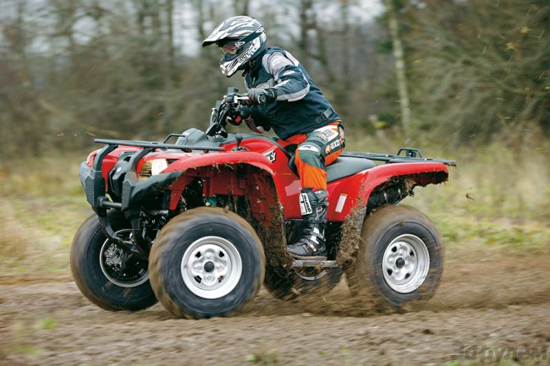 Проверить трансмиссию в деле мне довелось в болоте с ледяной (дело было осенью) водой, куда сгоряча загнал квадр – хотел ходом проскочить препятствие. И плотно засел. Я смирился с тем, что мотоботы заливало гадкой жижей, но оставаться здесь навеки в мои жизненые планы не входило. И стал переключать селектор КП. Да понял, что одного реверса в этой дрянной ситуации недостаточно, чтобы выбраться на сушу. Настал черед опробовать систему полного привода «On Command». Он включает в себя три режима: привод на два колеса, на четыре и полный привод с блокировкой межосевого дифференциалаѕ Когда не помогла и блокировка, я понял, что человеку (что звучит гордо, но не в моей ситуации) подвластно все – даже «засадить» всепролазную машину там, где до тебя уже прошло несколько четырехколесников. С чем себя и поздравил. Не желая сдаваться и подстегиваемый тем, что журналистской братии (а тест организовали для нескольких изданий) только дай повод поглумиться, попытался «выдернуть» себя из глиняного капкана, раскачивая Grizzly и выкручивая руль в разные стороны. Не помоглоѕ Тут подъехал инструктор, сопровождавший колонну тестеров. По его подсказке я встал обеими ногами на правую подножку, полностью загрузил подвеску своим весом и все теми же ударными раскачками и выворачиваниями руля вызвалил-таки себя из плена. Думаю, будь здесь Барон Мюнхгаузен, он признал бы меня за равного себе, то бишь сказочно великого. Славу я разделил бы с новым курком газа. Признаться, поначалу расценил возню с совершенствованием его формы исключительно дизайнерской заморочкой. Ан нет – убедился в исключительной практичности нововведения. В результате, когда барахтался в позе «зю», мне было удобно с ним «играть», и слушался он меня беспрекословно.
