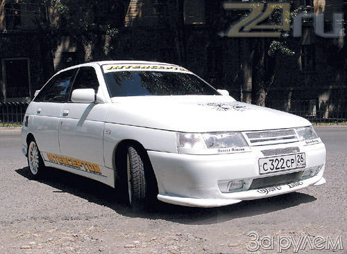 "Перехватчик" подготовлен в ставропольской фирме SST Sportline. Внешность - хищная, на все сто. Массивный передний бампер, пороги, спойлер. Машина будто распласталась на земле. Стойки - Monroe Sport Extreme Aero, заказные. После 160 км/ч они опускают машину. Да и пружины укороченные. Белые кованые 15-дюймовые колесные диски от "Авиатехнологии" стали заключительным штрихом во внешности.