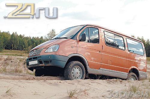 Пришла пора съехать с дороги. Перед нами - глубокий изрытый песок. "Соболь" спокойно идет на второй передаче, поднимая колесами фонтанчики. Полный привод у него постоянный, раздатка - двухступенчатая, с так называемой прямой (на самом деле она не совсем прямая, передаточное число - 1,07) и понижающей (1,87) передачами. Дорога поплохела, все внедорожные резервы мобилизованы, вторая пониженная - и "Соболь" проваливается в песчаный овраг. Но чувство полной вседозволенности приходит быстро, а пассажирам остается лишь покрепче держаться, чтобы при очередном прыжке не "приложиться" головой о потолок. 45-процентные подъемы с глубокими колеями автомобиль преодолевает не то чтобы играючи, - движок ревет, - но упрямо, зло. Посадить его непросто.