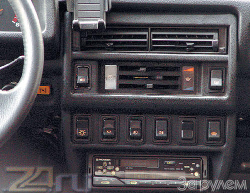 А проблема решается очень просто: надо вместо родных кнопок поставить газовские. Все они с подсветкой и прекрасно встают на место штатных – достаточно спилить упоры в гнездах. Проблема одна: выключатель очистителя заднего стекла не найти. Пришлось собрать кнопку из двух. Внутреннюю часть позаимствовал от выключателя стеклоподъемника, у которого нет фиксированных положений.
