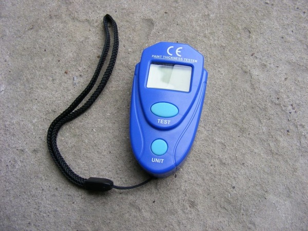 6) Определились, едите смотреть? - захватите толщиномер. Это незаменимое устройство колдовским способом находит шпаклевку и несколько слоев красок, застрахует вас от перевертыша, просто убитых авто, обнимателя столбов. К сожалению бампера получится обследовать глазами. Ведь данное устройство работает только с металлом. Как показывает практика, покрасить идентично заводской практически нереально.