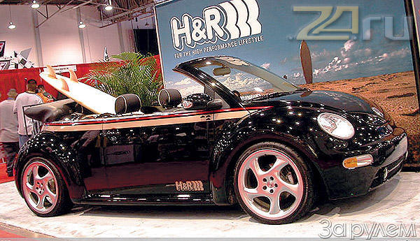 Черный лак кузова с несколькими графическими элементами и выхлопная система Supersprint, изготовленная по специальному заказу, придают H&R Beetle Kahuna, по мнению представителей фирмы, "настоящий вид 60-х".