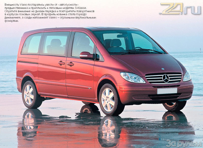 Заглавная «виктория» по-прежнему дает богатую пищу для концептуальных расшифровок – versality, variability. То есть многогранность, вариабельность. Конструктивно Viano – совершенно новый от передней номерной рамки до кончика выхлопной трубы, но его предназначение не изменилось. В первую очередь автомобиль приобретают организации и фирмы. Неудивительно, ведь респектабельный вэн размерами превосходит «семейный» сектор, а новая версия еще увеличилась. Как и положено по статусу, она имеет несколько вариантов длины – сочетания длин базы (3200 и 3439 мм) и заднего свеса. Так вот, даже в коротком исполнении Viano прибавил 90 мм и вытянулся до 4748 мм. А самый «протяженный» кузов прежним аршином и вовсе не измеришь – 5223 мм!
