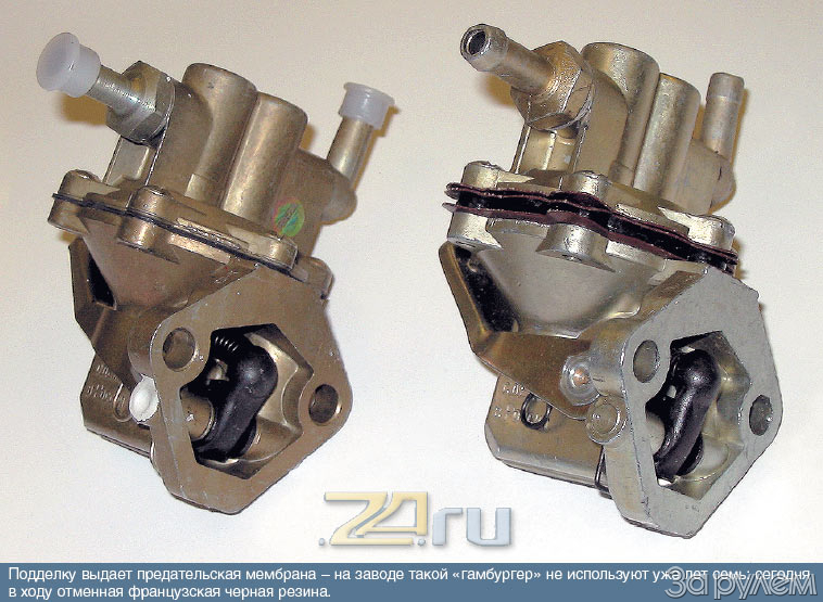 Благодаря вызывающей небрежности отличить поддельный бензонасос не просто, а очень просто. Но чтобы купить оригинал, понадобится своего рода мужество - выложить втрое больше денег. Не зря ли? Нет! "Левый" товар настолько плох, что через месяц-другой обязательно загнется. Придется идти за новым, на этот раз - настоящим. Или нам только месяц продержаться?