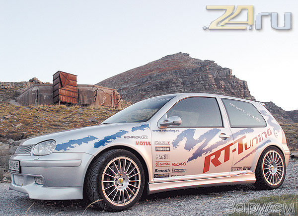 Первым проектом новой фирмы стал Golf Алексея. Его решили использовать как шоу-кар и испытательный стенд. Работа закипела. Воздуховоды поменяли на силиконовые Samco. Штатный охладитель воздуха заменили на фронтальный интеркулер большей производительности Forge. Подбором пружин перепускного клапана той же марки удалось добиться плавного изменения тяги при резком открытии дроссельной заслонки.