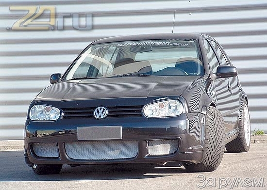 Для обычного Golf IV предложили два варианта подвески - с пружинами, укороченными на 35 и 50 мм! У R32 клиренс и так маленький, так что его пружины укоротили на 25 мм. Но даже такой небольшой величины достаточно, чтобы осадка стала заметной.
