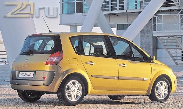 В пользу расширения пространства и цветовое оформление интерьера: мебель тут в основном светлая. Хотя дело не только в восприятии: «воздуха» в салоне и впрямь прибавилось. На рослых пассажиров наконец-то перестанет давить близкий потолок: расстояние от пола до крыши в районе передних сидений увеличили на 26 мм. Почти на столько же стало свободней в плечах, а задним пассажирам выделили больше места для ног. Откуда добавка? Да просто Scenic II длиннее предшественника на 80 мм. Выросла и база – на 60 мм. Колеса расставили почти по углам, и теперь благодаря коротким свесам немаленький в общем-то однообъемник (4,25 м в 5-местном исполнении) принял совсем игрушечный вид.