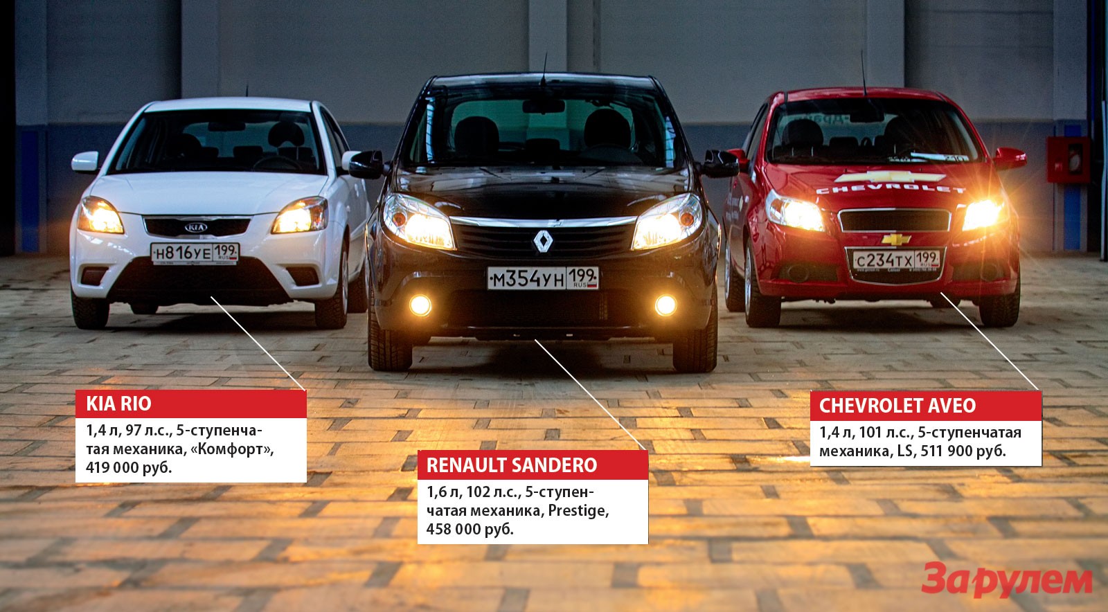 Renault Sandero, Chevrolet Aveo, KIA Rio: Выход в город