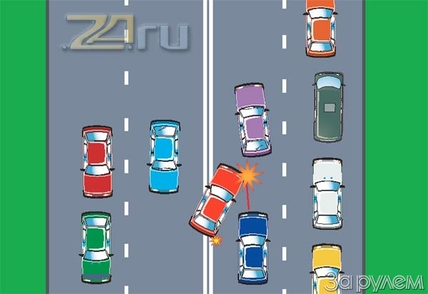 Комментарий юриста "За рулем": "Инспекторы ДПС, конечно, привлекут Василия к административной ответственности за езду по встречной полосе (нарушение п. 9.2 "На дорогах с двусторонним движением, имеющих четыре полосы или более, запрещается выезжать на сторону дороги, предназначенную для встречного движения") по статье 12.15.3 КоАП, предусматривающей лишение прав, однако виновной в ДТП все же будет девушка на "Таврии". Когда произошла авария, машина Василия стояла. Следовательно, водительница "Таврии" нарушила п. 10.1 ПДД: "Водитель должен вести транспортное средство со скоростью, не превышающей установленного ограничения, учитывая при этом интенсивность движения, особенности и состояние транспортного средства и груза, дорожные и метеорологические условия, в частности видимость в направлении движения. Скорость должна обеспечивать водителю возможность постоянного контроля за движением транспортного средства для выполнения требований Правил".