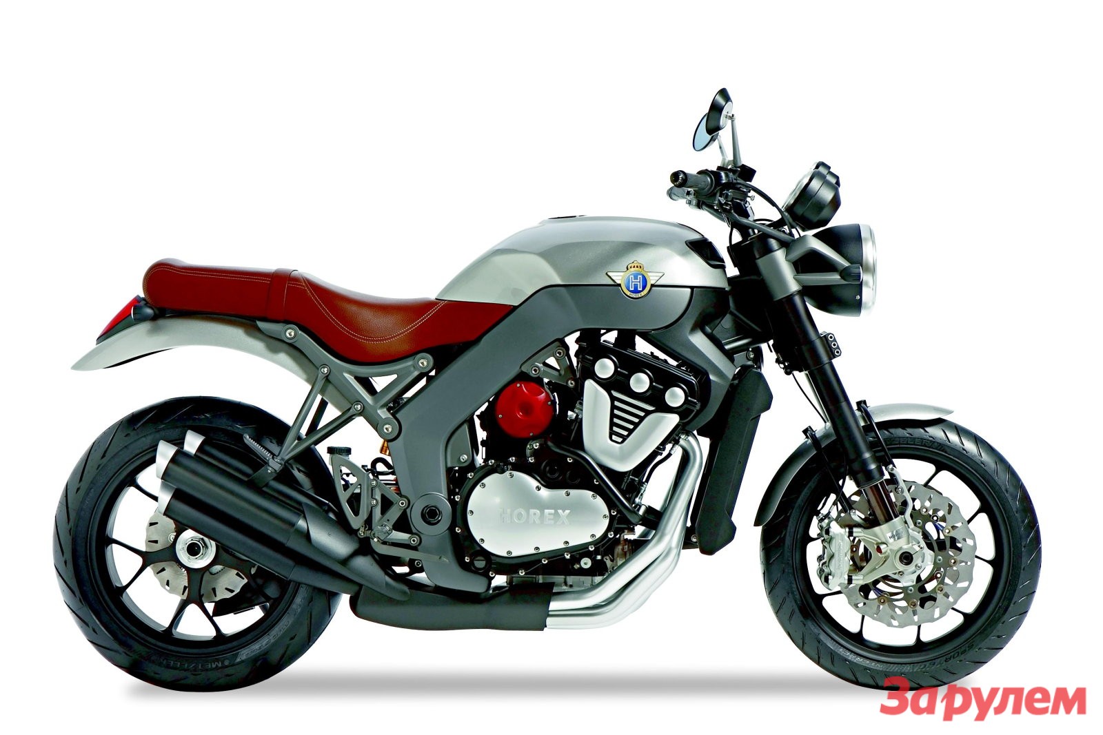 Навороченный технически, солидный и мощный – короче, made in Germany. И под пусть подзабытой, но настоящей немецкой маркой. Horex Automotive AG (1923-1960) – немецкая компания (г.Бад-Хомбург), известная весьма передовыми и высококачественными 500-кубовыми мотоциклами британской школы. (Один из первых рекламных слоганов марки гласил: «Построено мотоциклистами для мотоциклистов!») Будучи купленной Daimler-Benz в 1960 году, к мотоциклам более не возвращалась. В 80-90-е годы предпринимались попытки возродить марку, закончившиеся неудачей. В 2007 году права на марку выкуплены компанией Compact-Bike Entwicklungs GmbH из пригорода Мюнхена, переименованной весной 2010 года в Horex GmbH.