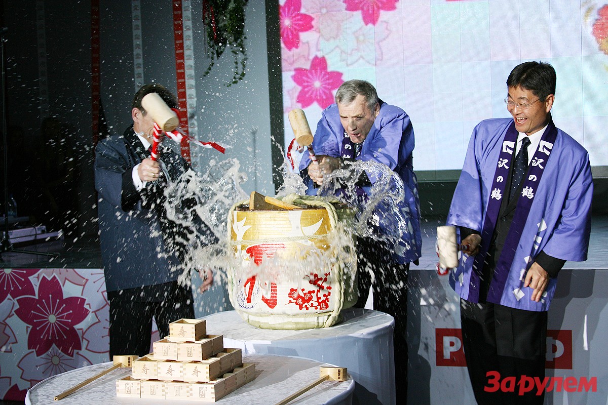 Официальная церемония открытия, надо сказать, прошла довольно неофициально. Конечно, не обошлось без традиционного перерезания ленточки. Однако шуток и веселья было гораздо больше, чем привычного официоза. К тому же, не обошлось без старинного японского обычая — разбивания бочки сакэ. Говорят, что чем больше брызг летит из бочки, тем удачнее будет новое дело. В таком случае, у «Тойота Центр Ясенево» все будет очень и очень хорошо.
