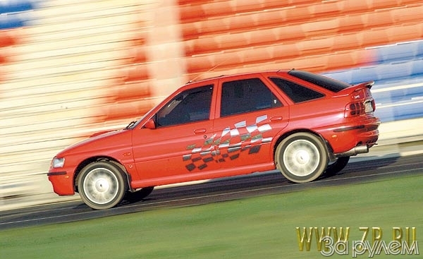 Сразу после жестянки-малярки автомобиль получил другие колеса. 16-дюймовые диски Ford давно скучали в гараже рядом с банками, дожидаясь своего часа. Обув передние в Yokohama 205/50, а задние в Michelin Pilot Sport 255/50, Алексей одновременно освободил место и улучшил внешность Escort. После чего безотлагательно принялся листать импортные тюнинговые каталоги. Добыть то, что он нашел, помогли лишь прочные связи с заводом. Первыми из Америки пришли реснички на фары. Затем - воздухозаборник на капот, решетка радиатора и хромированные шильдики RS, RS200 и Escort. Мало того - Алексей раскошелился на полноценный американский тюнинг-пакет - бамперы с черными решетками, пороги и молдинги.