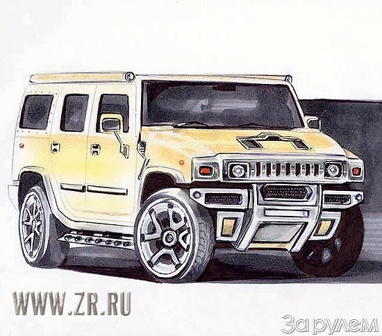 Единственная возможная проблема – колеса. Во-первых, обратите внимание на диски. На рынке такой модели, тем более "хаммеровского" размера, просто нет, поэтому придется подбирать колеса из довольно скудного ассортимента. Та же беда с шинами. Они на эскизах низкопрофильные, а это сплошная головная боль и для тюнеров, и для заказчиков.
