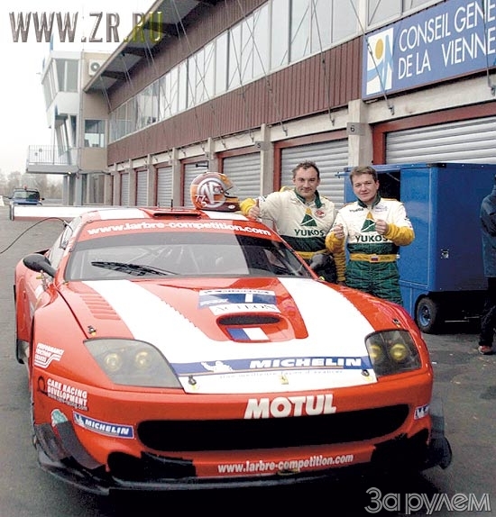 Французская команда Larbre Competition, готовящаяся выйти на арену чемпионата, пригласила нескольких пилотов на автодром Дю Валь де Вьен в 350 км от Парижа, в том числе наш дуэт. Цель тестов – сравнение пилотов и выбор наиболее подходящих. Автомобиль – Ferrari 550 Maranello класса GT, то есть чемпионский, – именно на таком титул в этом году взяли Лука Капеллари и Фабрицио Голлин. Подготовка машин, впрочем, разнится – есть чуть более «заводская» и чуть менее. Данный аппарат довела до ума известная британская фирма Prodrive.