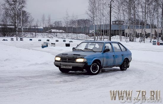 Мадишный полигон расположился на Ленинградке, минутах в пятнадцати езды от МКАДа. Гостеприимные хозяева со вкусом подошли к трассе: полукилометровое кольцо просто-таки изрезано поворотами. Достаточно одного взгляда, чтобы понять: здесь выше сорока не разгонишься. Эх, после скоростных прямиков Гребного канала становится почти обидно. Ну что, в самом деле, за детско-юношеский городок учебной езды! Как настоящие профи, отправляемся «прописывать» трассу пешком. Благо не десять километров топать, палатку брать не надо. Оказывается, что это единственное благо. Покрытие ровное и слегка припорошенное снегом. В первой же «двушке» выясняем, что под снегом чистый лед. Двух точек опоры явно маловато. Попеременно поскальзываясь, мы то и дело принимаем горизонтальное положение. К финишу пешего похода понятно, что и сорока здесь будет за глаза. Пробный круг на машине подтверждает вывод. «Тридцать, правый два» проходим, не сбавляя газа. Дальше – «пятнадцать, левый шесть», вроде вошли, теперь самое время... ага, размечтались – уезжаем в сугроб по самые зеркала! Выталкиваем машину вбок: в то время как штурман со всей силы давит на крыло со стороны сугроба, водитель осторожно подгазовывает с вывернутыми колесами, и машина плавно соскальзывает на трассу.