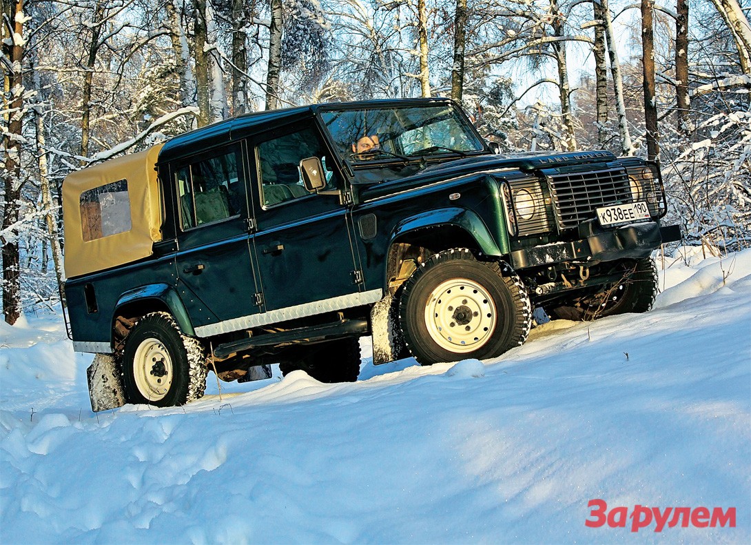 Зато на заснеженном проселке Defender хорош! Крупные ухабы и ямы он проглатывает с великолепным презрением, а «зубастые» штатные шины позволяют пахать сугробы без опаски. Конечно, перед особо тяжелым участком лучше задействовать весь арсенал: пониженный ряд и блокировку межосевого дифференциала. Для этого придется дотянуться до второго рычага... и искать нужный режим на ощупь – разболтанность рабочего хода не позволяет оперировать вслепую.