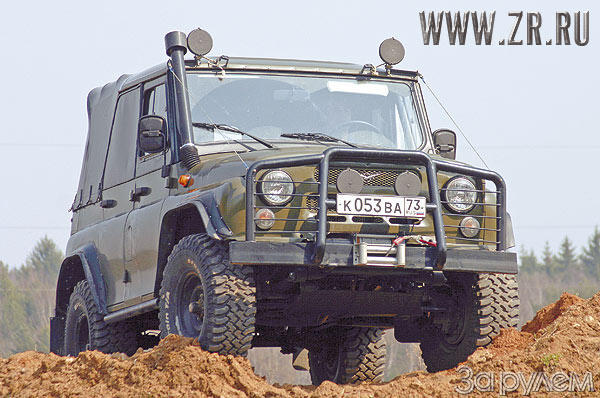 Подробности из Подмосковья. О происхождении. Эта машина создана специально для участия в трофи-рейдах. Подготовлена по группе ТР2* Ульяновским авторемонтным заводом (УАРЗ) в абсолютном соответствии с техническими требованиями, предъявляемыми РАФ к этой группе. Впрочем, эти требования и так не оставляют простора для фантазии и творчества – все четко регламентировано. С импортными внедорожниками чуть попроще, но это же УАЗ! То есть нечто вроде АКМ – разобрать и собрать с завязанными глазами за полчаса. Ульяновцы решили не мудрить и сделали все четко. А значит, перед нами не просто «версия на внедорожную тему». Это автомобиль, который можно взять за образец для постройки собственного трофийного бойца.