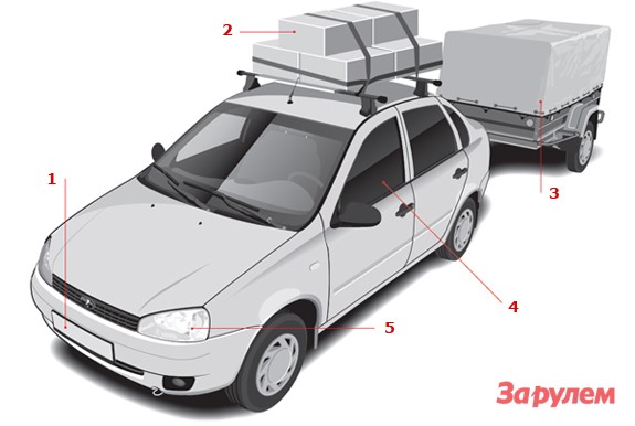 Нельзя перевозить груз тяжелее максимально допустимого (верхнюю планку устанавливает изготовитель), а также ограничивающий обзор водителя и закрывающий световые приборы и регистрационные знаки. Если поклажа выступает за габариты машины спереди или сзади более чем на 1 м или сбоку более чем на 0,4 м, ее считают крупногабаритной. Такую следует обозначить знаками «Крупногабаритный груз». А ночью или в туман – еще и фонарем или световозвращателем белого цвета спереди и красного сзади. Не выполнил этих требований – считай, расстался с 1000–1500 рублей.