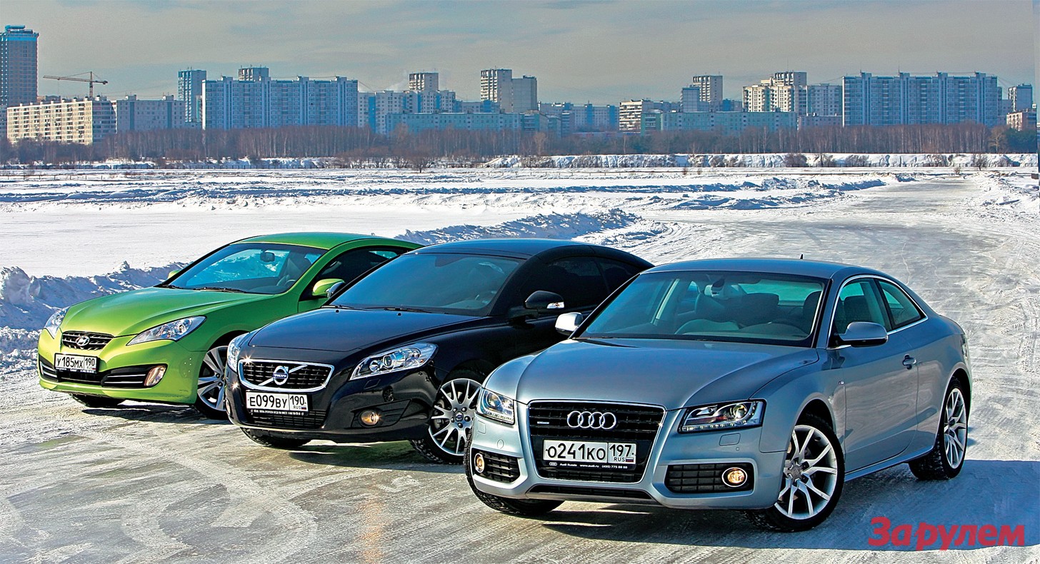 На блестящем, как стекло, льду кольцевой трассы «МегаФон Тушино Ринг» выстроились три купе: классический Hyundai Genesis, переднеприводный Volvo С70 и Audi А5 со всеми ведущими. Силы примерно равны: от 213 у «корейца» до 240 у «властелина колец». Вполне достаточно, чтобы сорвать колеса в пробуксовку!