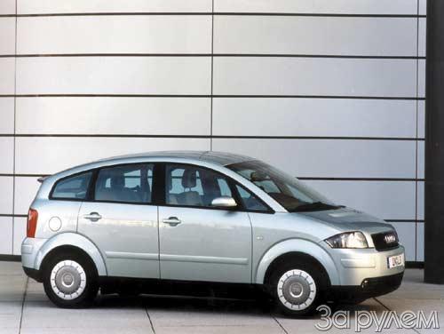 Помпезность церемонии, в общем-то, оправданна - в этой машине многое сделано впервые в мире: первый крупносерийный алюминиевый кузов, первый опыт изготовления всей боковины как единой детали, первый роботизированный комплекс для лазерной сварки алюминиевых деталей... Но этих поводов устроителям праздника показалось мало - они решили заодно провести презентацию первого в мире пятидверного "трехлитрового" автомобиля на базе все той же А2. Чтобы снизить потребление топлива, использован наработанный на "Лупо" опыт. Под капот установили 1,2-литровый дизель мощностью 45 кВт/61 л. с. и автоматическую коробку передач. В экономичном режиме, как и у "Лупо", реализован алгоритм "старт-стоп". Масса автомобиля снижена еще на 135 кг и составляет 825 кг. Для этого из алюминиевых сплавов выполнена вся ходовая часть, облегчены сиденья и применен более тонкий лист для панелей. Улучшены аэродинамические качества (Сх=0,25 - впервые на серийной машине!), установлены специальные шины. "Трехлитровый" автомобиль разгоняется до сотни за 14,5 с и достигает максимальной скорости 168 км/ч.